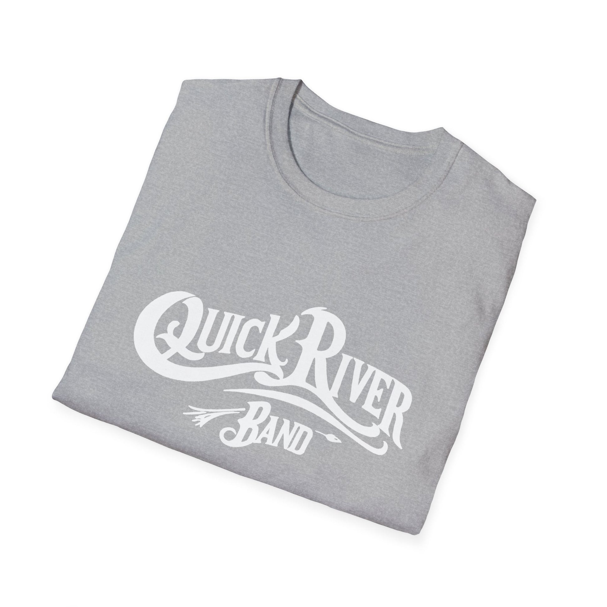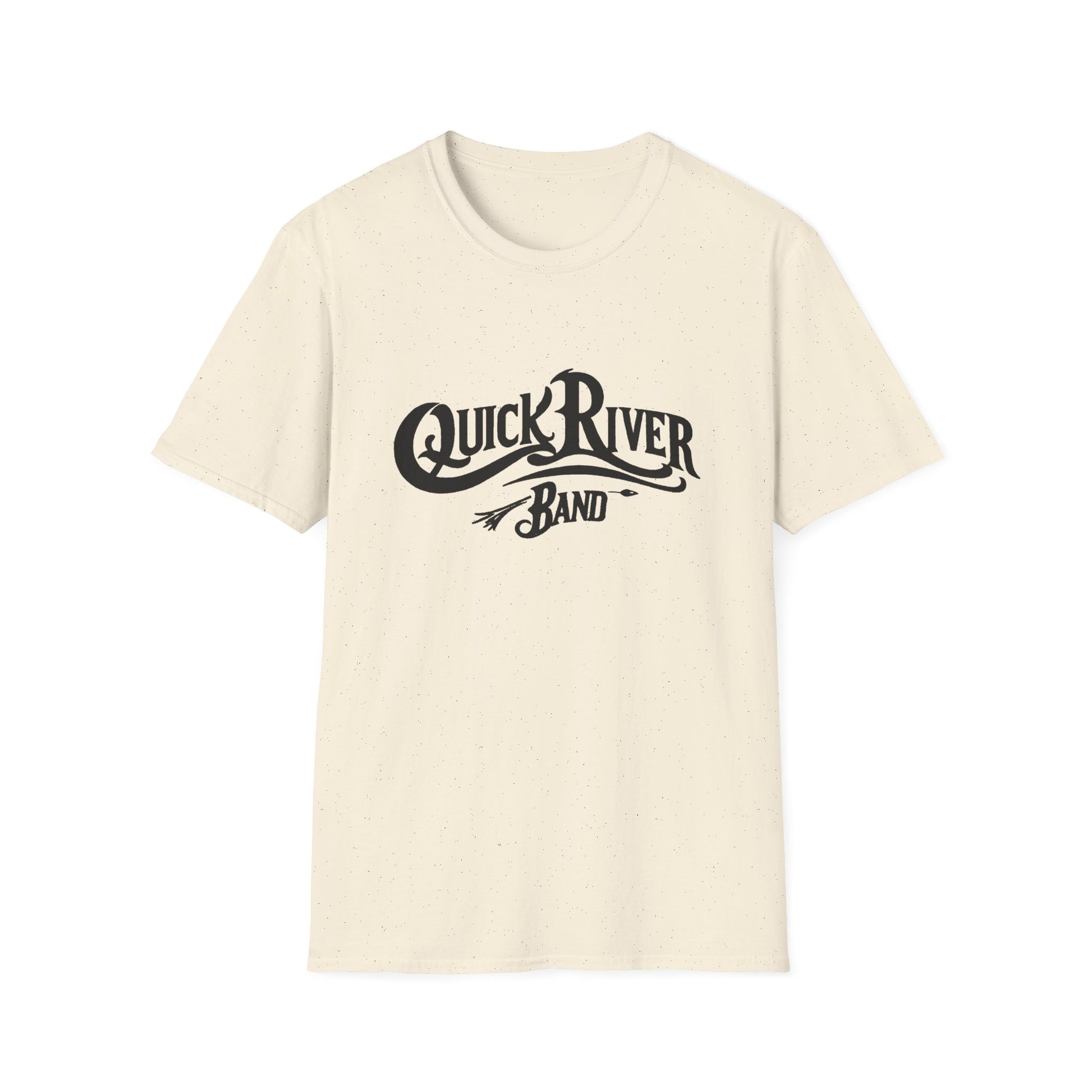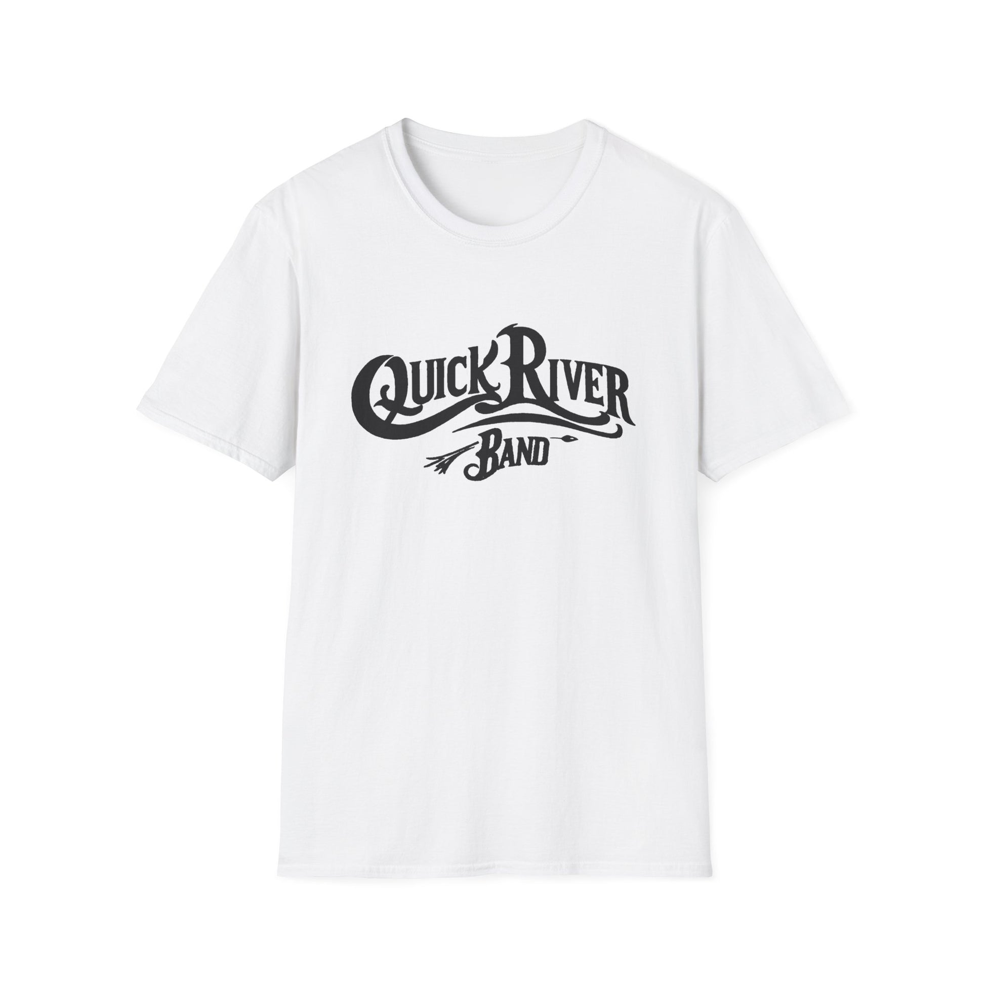 Quick River Band official T-shirt. Featuring the bluegrass songs of Tom Galloway with the power of Airshow, this band collaboration offers a new grass yet vintage sound and feel