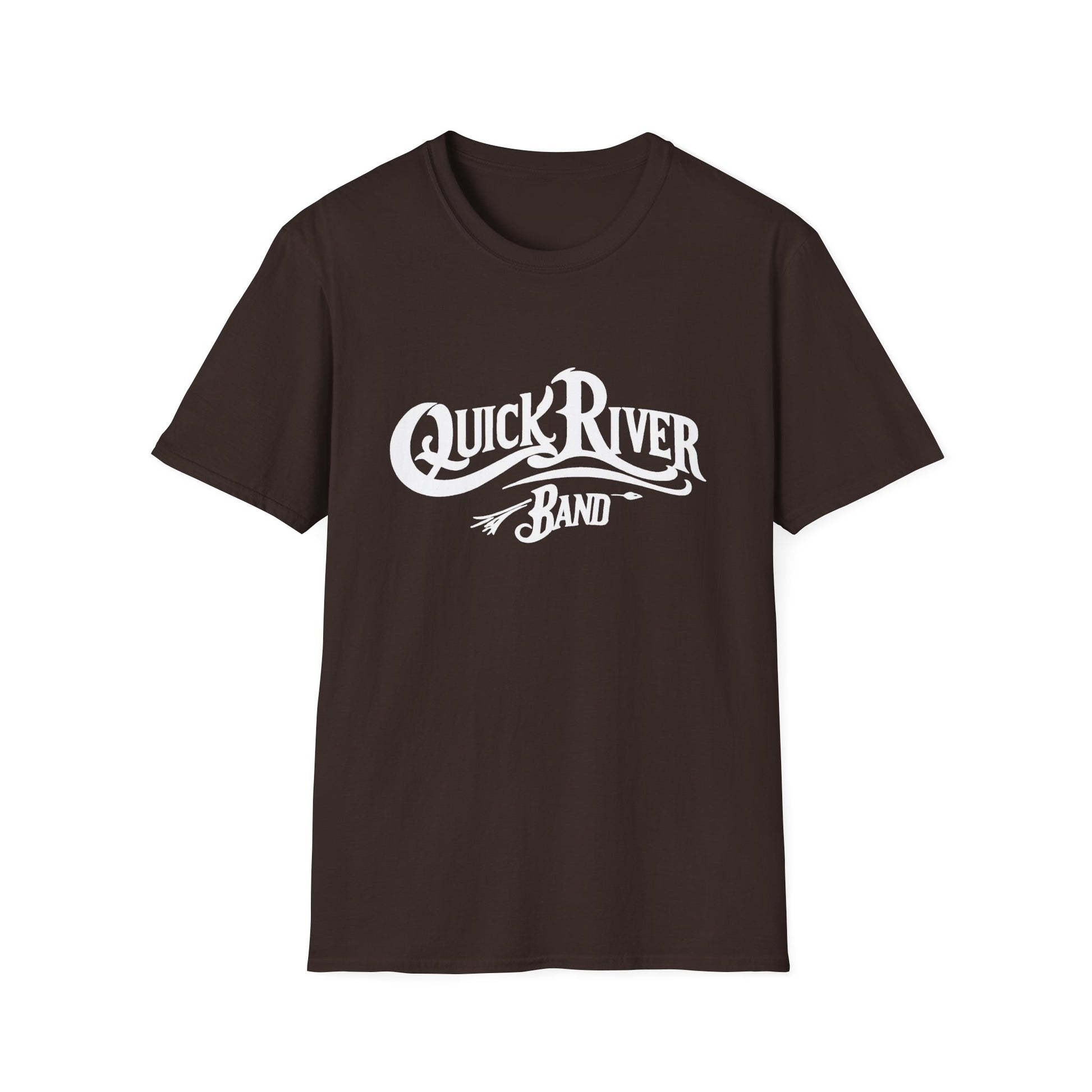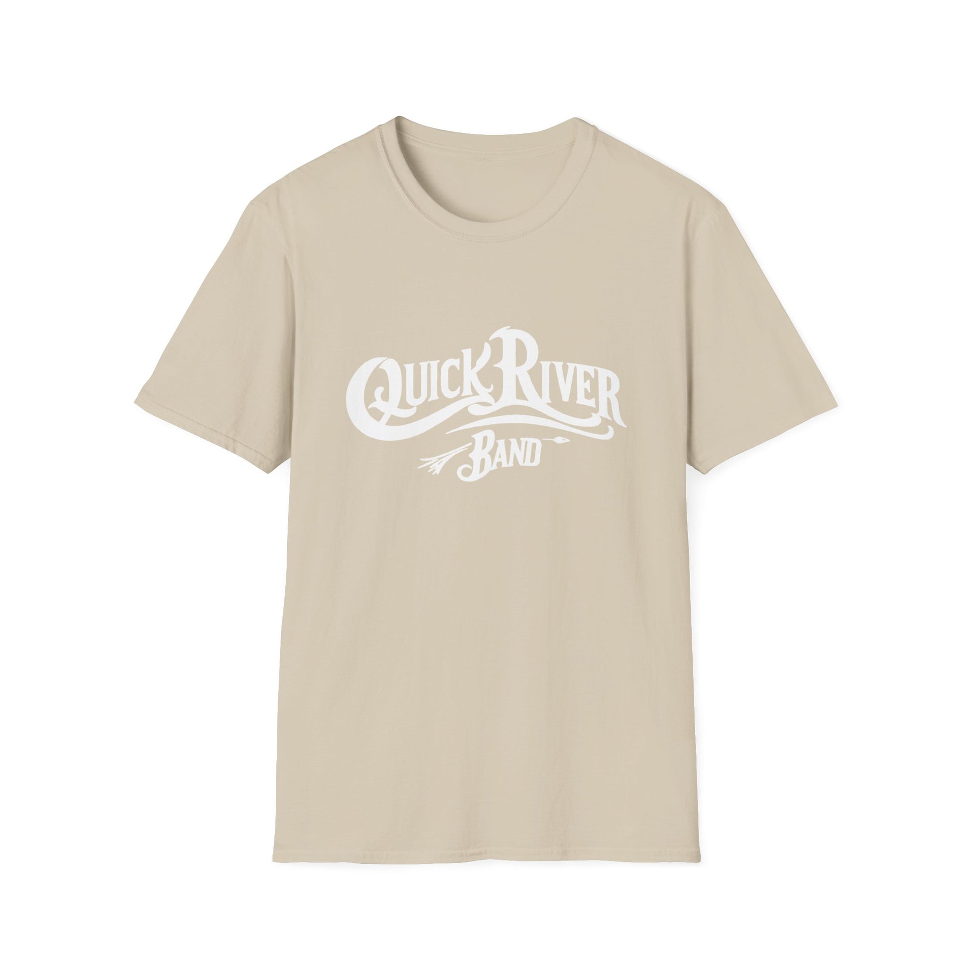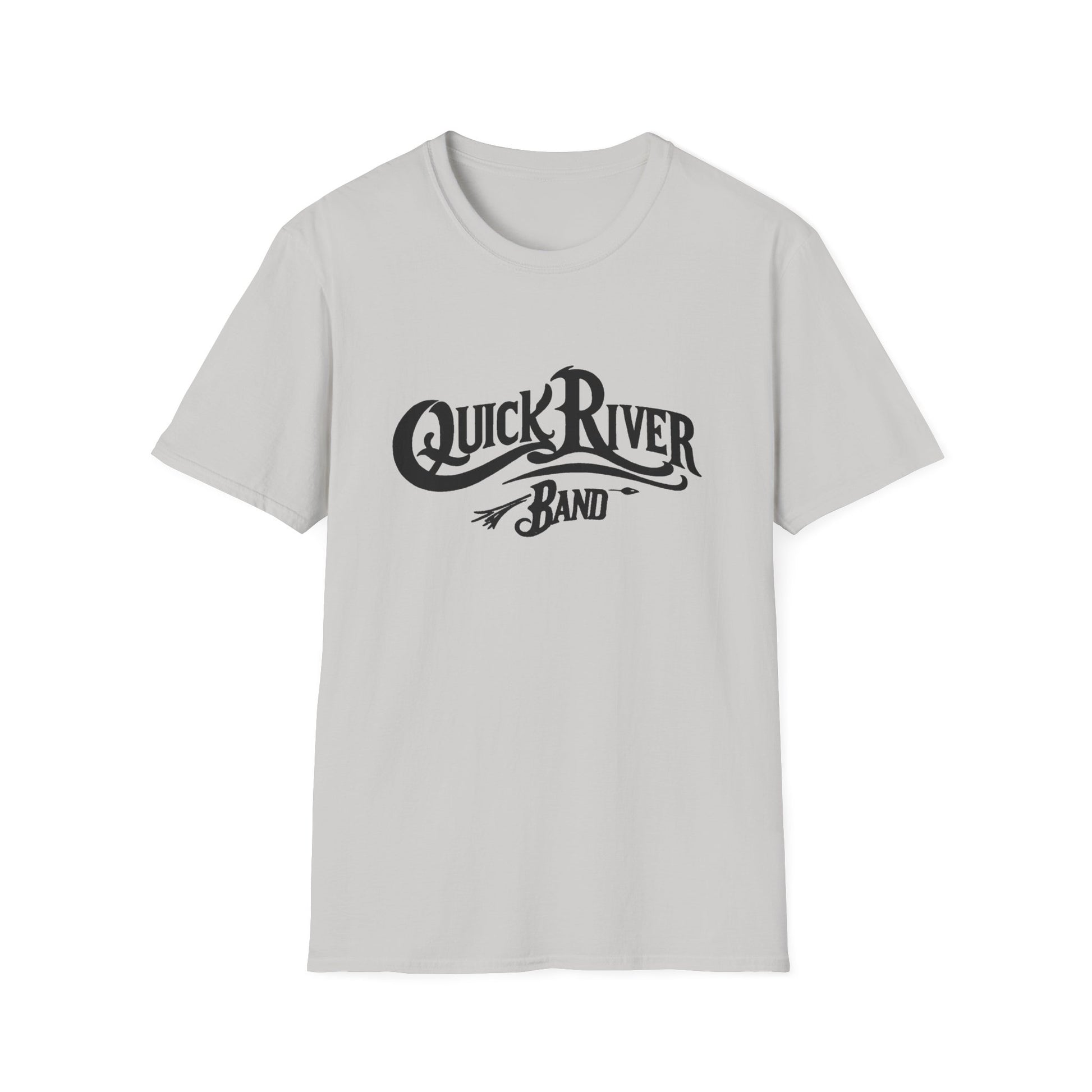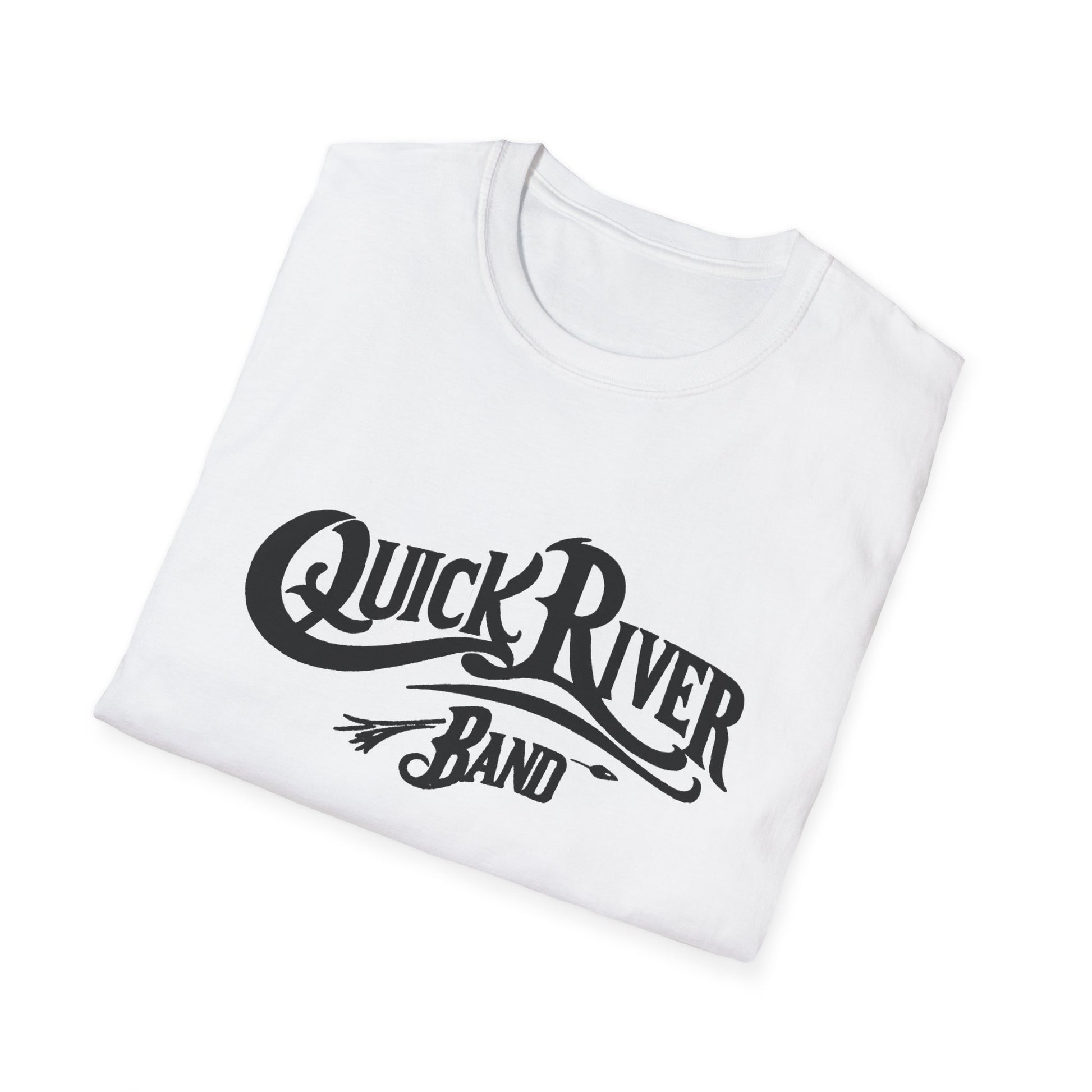 Quick River Band official T-shirt. Featuring the bluegrass songs of Tom Galloway with the power of Airshow, this band collaboration offers a new grass yet vintage sound and feel
